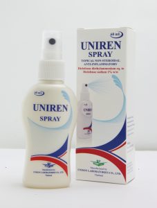 Uniren Spray 60ml INDICATIONS Relief inflammation & pain for : Traumatic inflammation of the tendon, ligaments, muscles and joints Soft-tissue rheumatism Osteoarthrosis, peri arthropathy DOSAGE