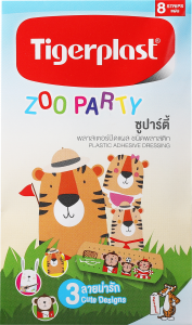 Tigerplast (Zoo Party) Plastic adhesive dressing Animal character – Tiger , Monkey & Rabbit INDICATION : Protection for everyday cuts and scrapes INSTRUCTION FOR USE